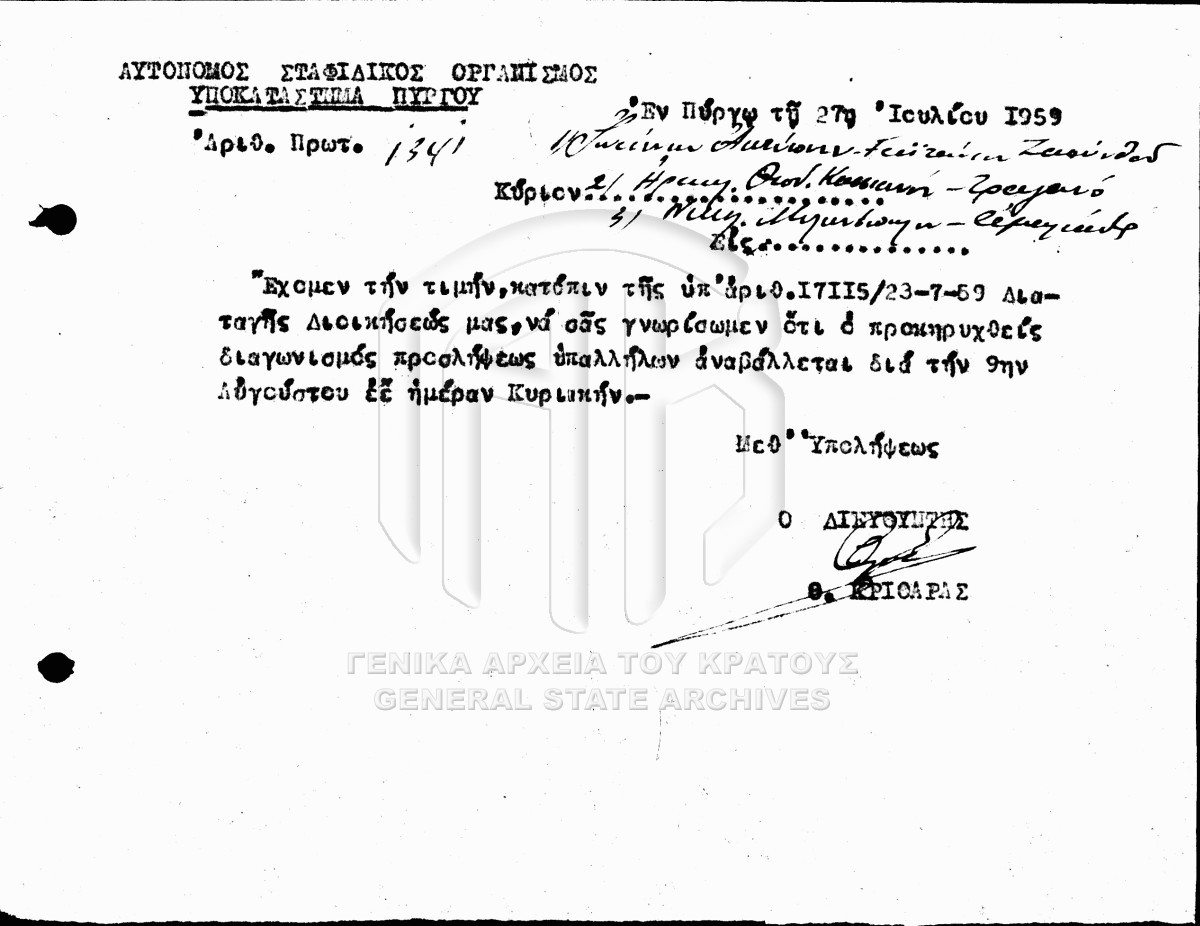 Περιεχόμενα: Εκθέσεις, πρακτικά και άλλα έγργραφα του Ινστιτούτου Σταφίδας. Καταστάσεις δαπανών. Μετακίνηση εκτός έδρας γεωπονικού πρ...