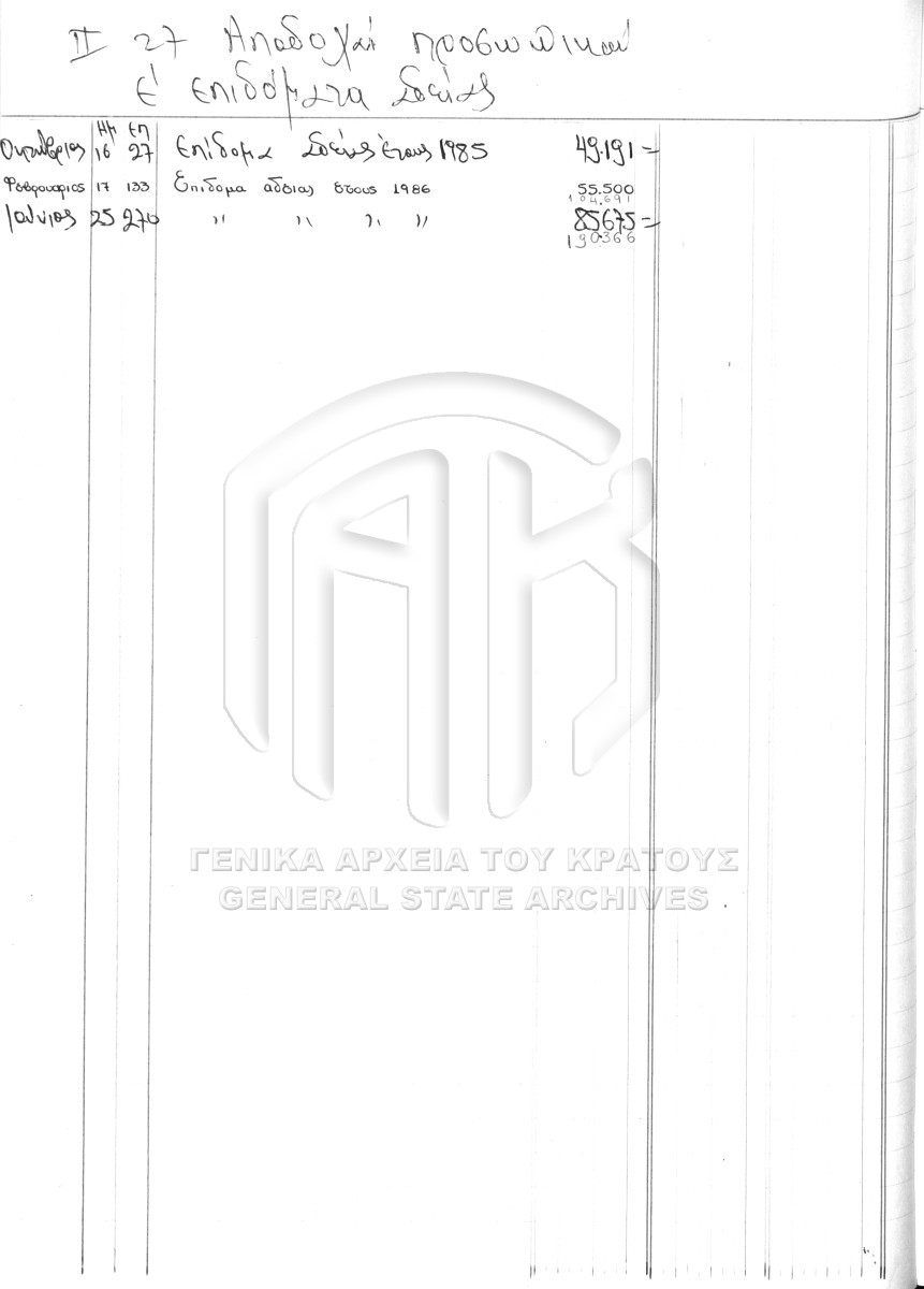 [Υποφάκελος] GRGSA-ILE_ADM007.01.F000019.SF0003 Υποφάκελος #003 - ΙΝΣΤΙΤΟΥΤΟ ΣΤΑΦΙΔΑΣ [1985] Κατάλογοι μισθοδοσίας, εξόδων, λογαριασμών, εισπράξεων. |