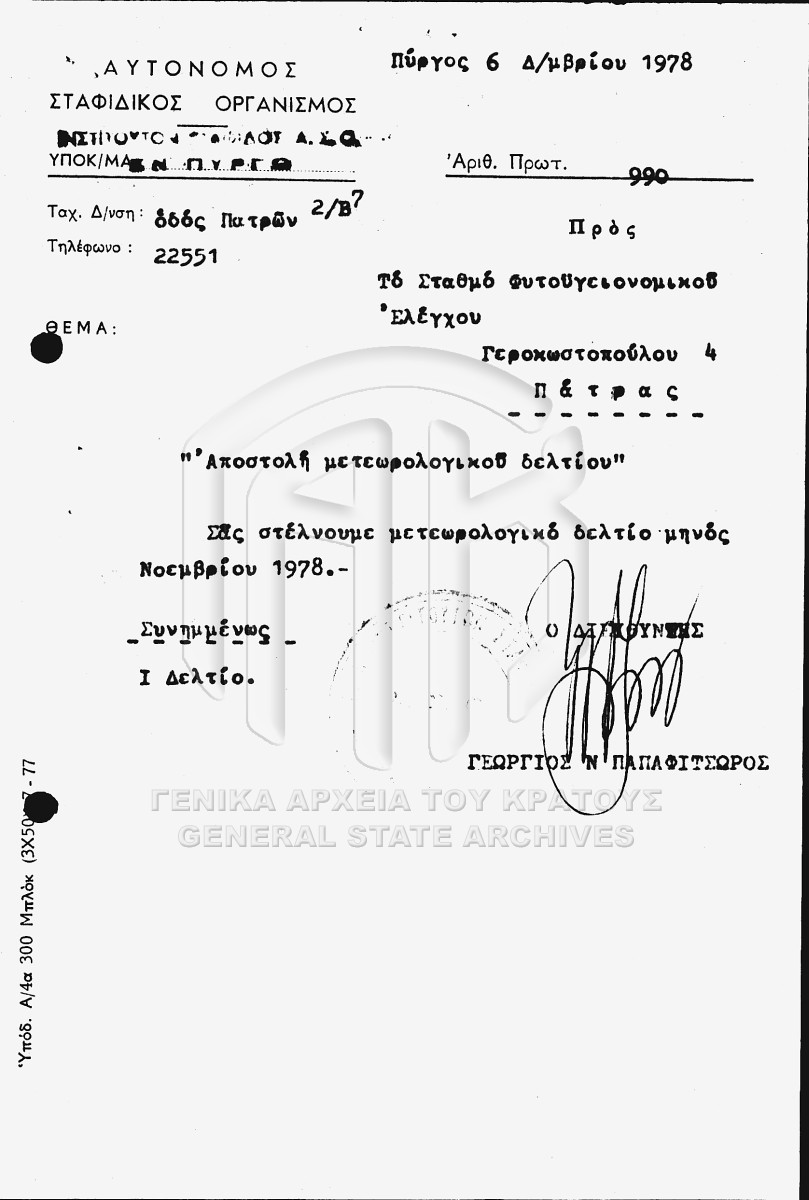 File #021 - ΙΝΣΤΙΤΟΥΤΟ ΣΤΑΦΙΔΑΣ  [1961 - 1982]