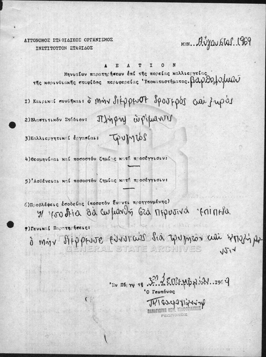 Υποφάκελος #003 - ΙΝΣΤΙΤΟΥΤΟ ΣΤΑΦΙΔΑΣ  [1967 - 1970]