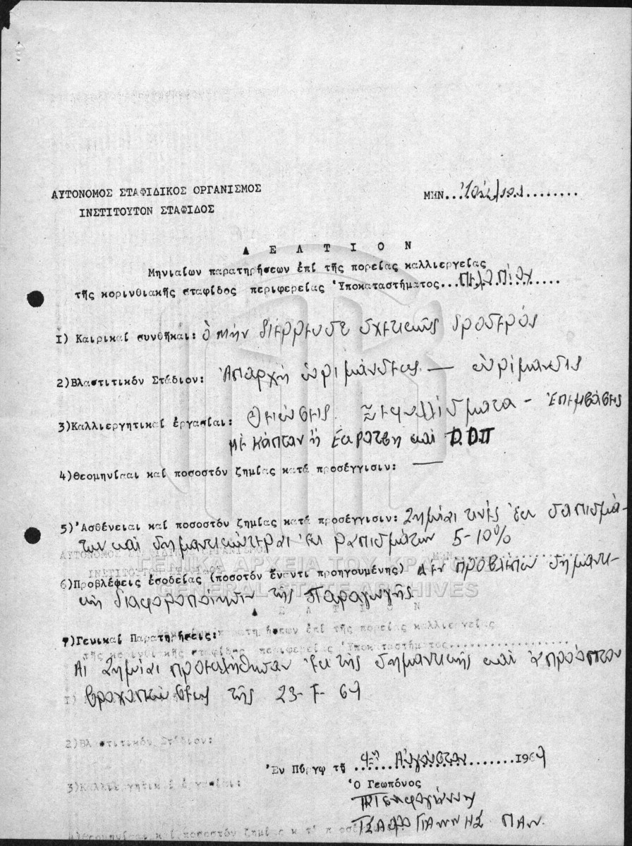 Φάκελος #021 - ΙΝΣΤΙΤΟΥΤΟ ΣΤΑΦΙΔΑΣ  [1961 - 1982]