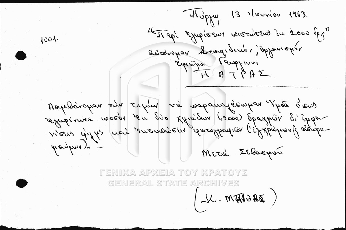 [Φάκελος] GRGSA-ILE_ADM007.01.F000027 Φάκελος #027 - ΙΝΣΤΙΤΟΥΤΟ ΣΤΑΦΙΔΑΣ [1961 - 1963] Περιεχόμενα: Σχετικά με αποστολές και παραλαβές υλικού. |