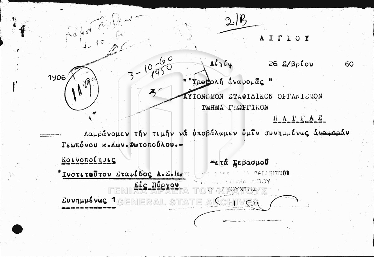 Sous-fichier #001 - ΙΝΣΤΙΤΟΥΤΟ ΣΤΑΦΙΔΑΣ  [1960 - 1963]