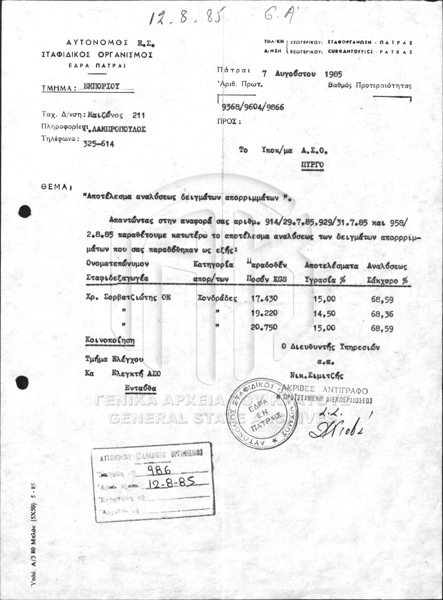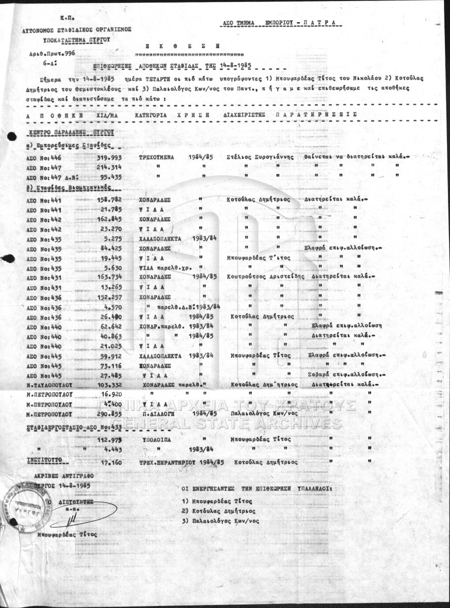 [Subfile] GRGSA-ILE_ADM007.01.F000030.SF0004 Subfile #004 - ΙΝΣΤΙΤΟΥΤΟ ΣΤΑΦΙΔΑΣ [1985 - 1986] Σχετικά με την παραγωγή σταφίδας. |