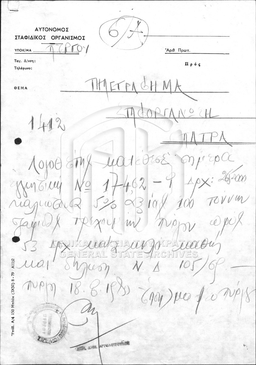 Subfile #006 - ΙΝΣΤΙΤΟΥΤΟ ΣΤΑΦΙΔΑΣ  [1981]