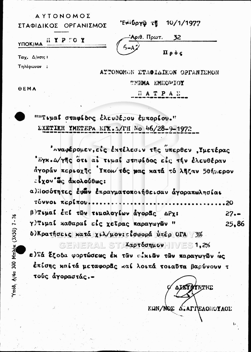 Contents: Αγοραπωλησία σταφίδας. Πίνακες ημερήσιας παραλαβής σταφίδας. Σχετικά με την παραγωγή σταφίδας. Σχετικά με την παραγωγή σ...