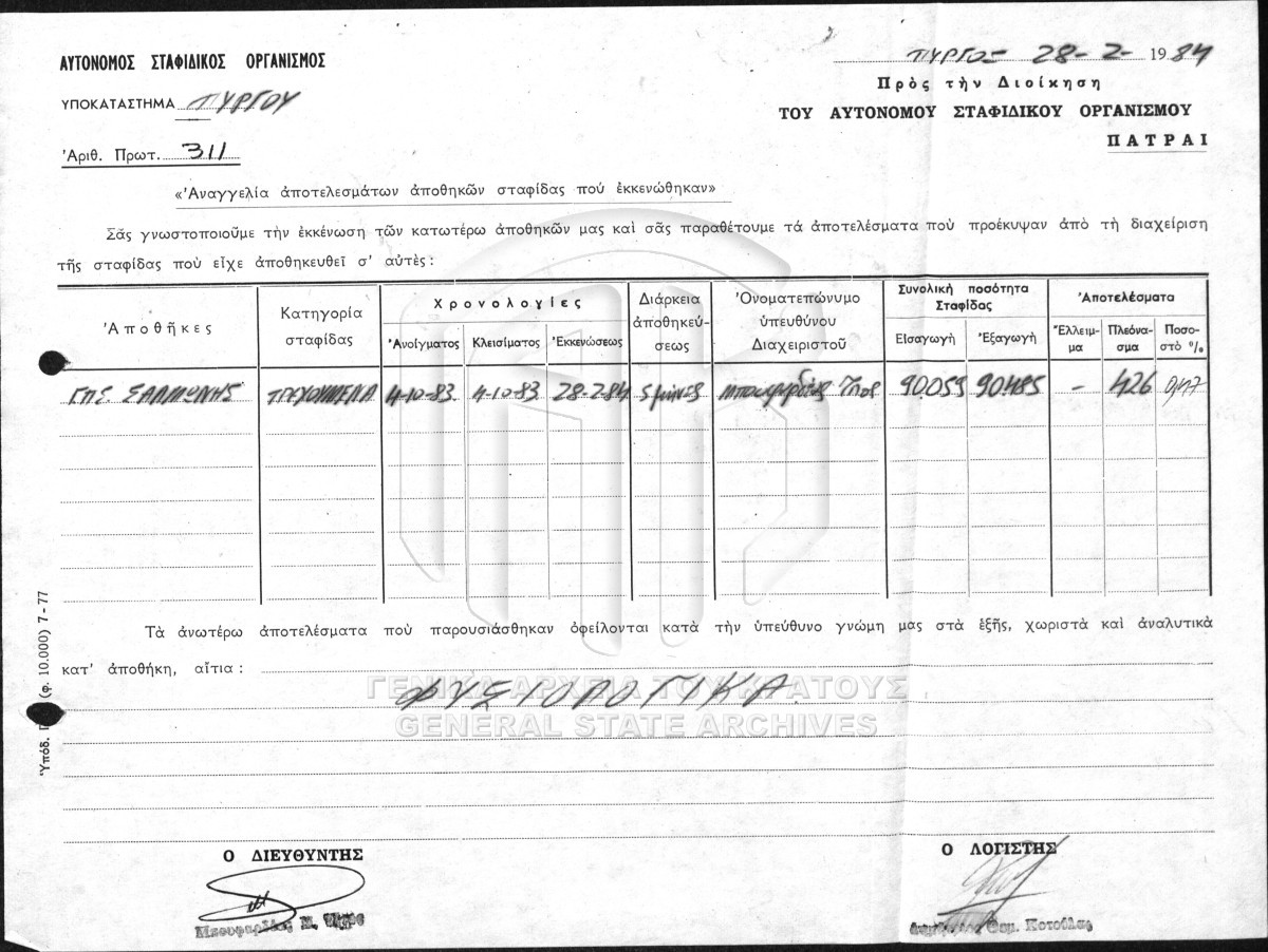 Subfile #009 - ΙΝΣΤΙΤΟΥΤΟ ΣΤΑΦΙΔΑΣ  [1984]