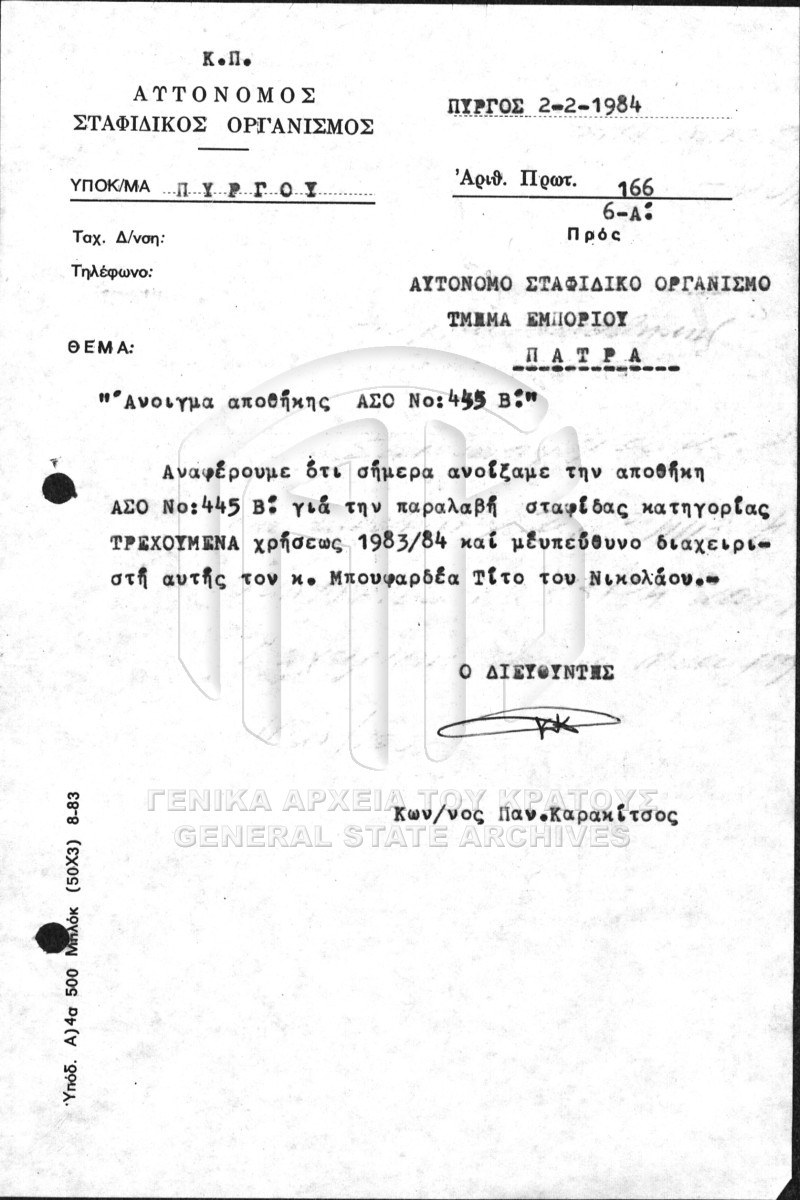 Υποφάκελος #009 - ΙΝΣΤΙΤΟΥΤΟ ΣΤΑΦΙΔΑΣ  [1984]