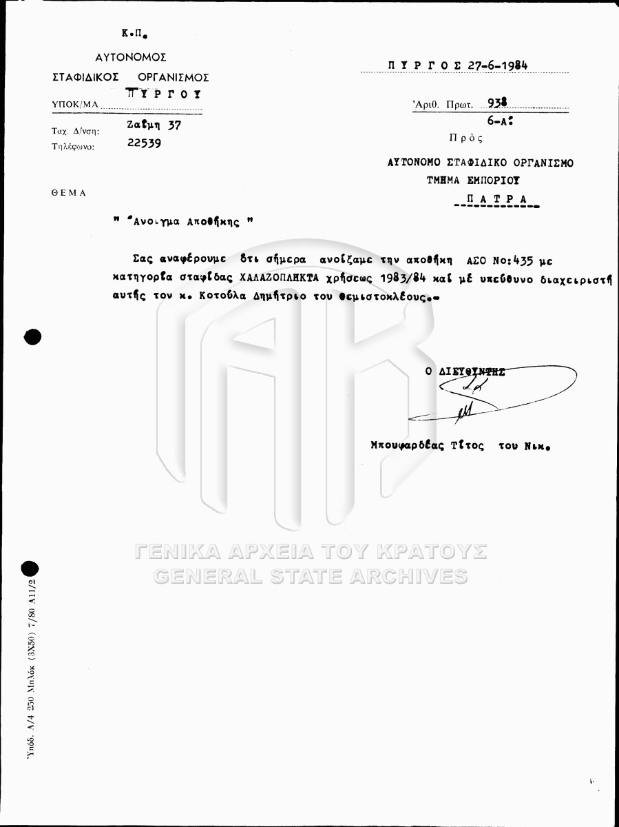 Sous-fichier #009 - ΙΝΣΤΙΤΟΥΤΟ ΣΤΑΦΙΔΑΣ  [1984]