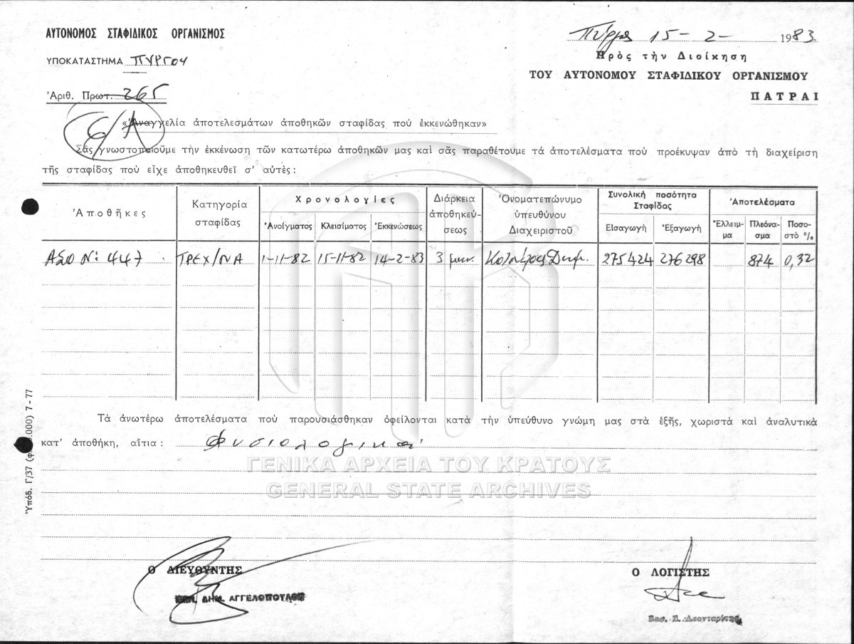 [Subfile] GRGSA-ILE_ADM007.01.F000030.SF0010 Subfile #010 - ΙΝΣΤΙΤΟΥΤΟ ΣΤΑΦΙΔΑΣ [1983 - 1984] Σχετικά με την παραγωγή σταφίδας. |