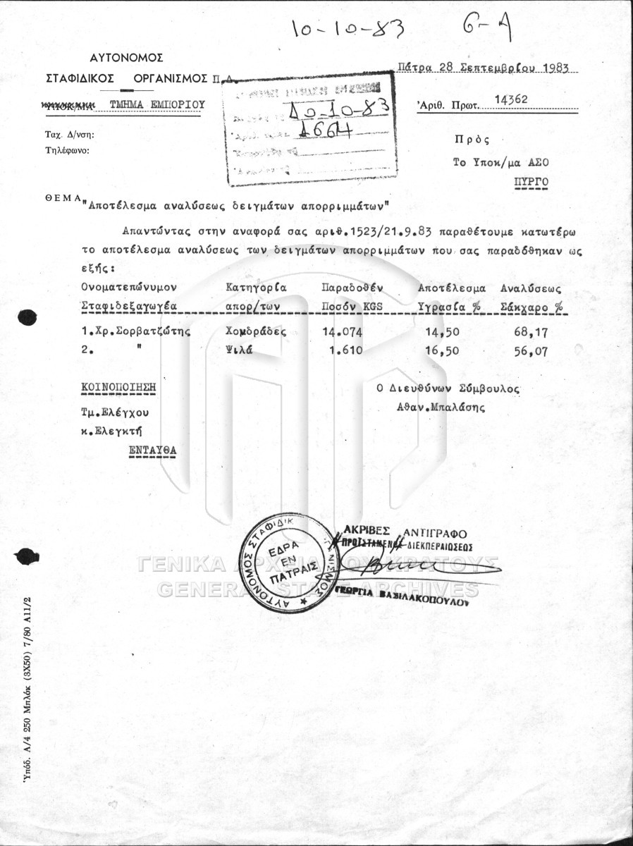 [Sous-fichier] GRGSA-ILE_ADM007.01.F000030.SF0010 Sous-fichier #010 - ΙΝΣΤΙΤΟΥΤΟ ΣΤΑΦΙΔΑΣ [1983 - 1984] Σχετικά με την παραγωγή σταφίδας. |