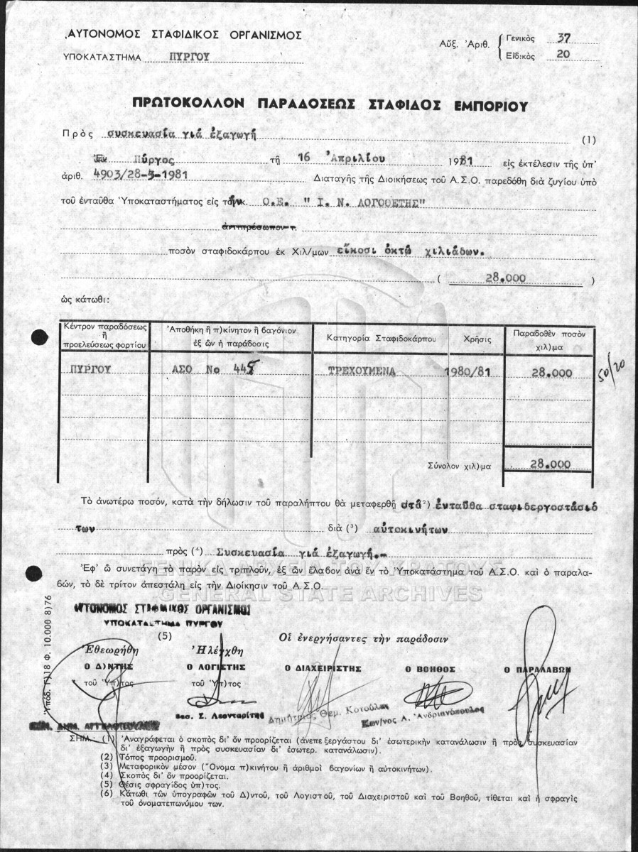 Contents: Αγοραπωλησία σταφίδας. Πίνακες ημερήσιας παραλαβής σταφίδας. Σχετικά με την παραγωγή σταφίδας. Σχετικά με την παραγωγή σ...