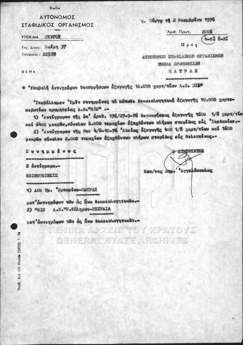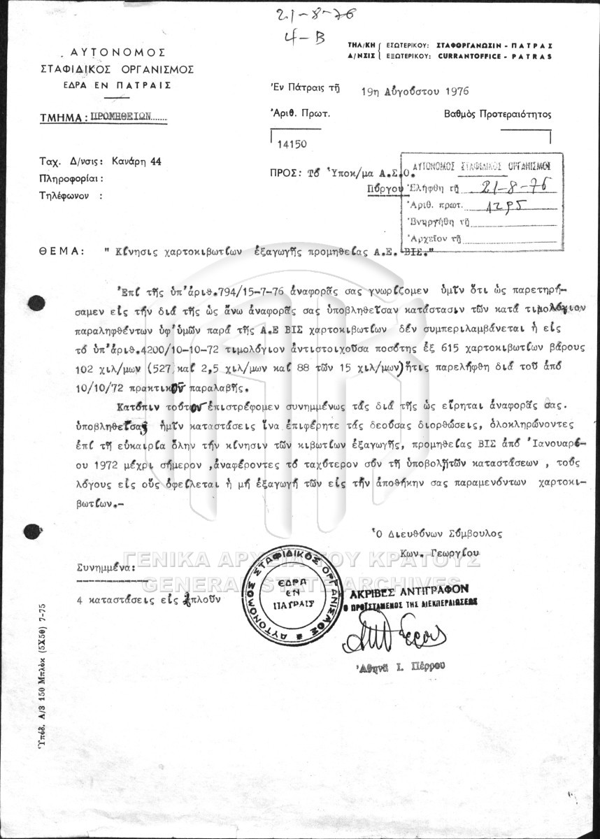 Subfile #014 - ΙΝΣΤΙΤΟΥΤΟ ΣΤΑΦΙΔΑΣ  [1976 - 1979]