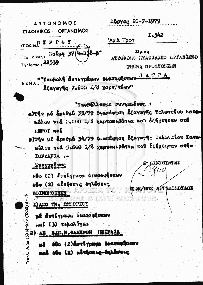 [Subfile] GRGSA-ILE_ADM007.01.F000030.SF0014 Subfile #014 - ΙΝΣΤΙΤΟΥΤΟ ΣΤΑΦΙΔΑΣ [1976 - 1979] Σχετικά με την παραγωγή σταφίδας. |