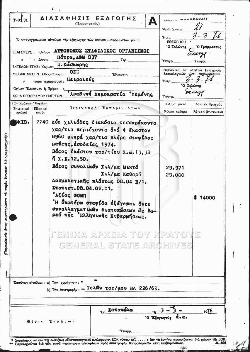 Περιεχόμενα: Αγοραπωλησία σταφίδας. Πίνακες ημερήσιας παραλαβής σταφίδας. Σχετικά με την παραγωγή σταφίδας. Σχετικά με την παραγωγή σ...