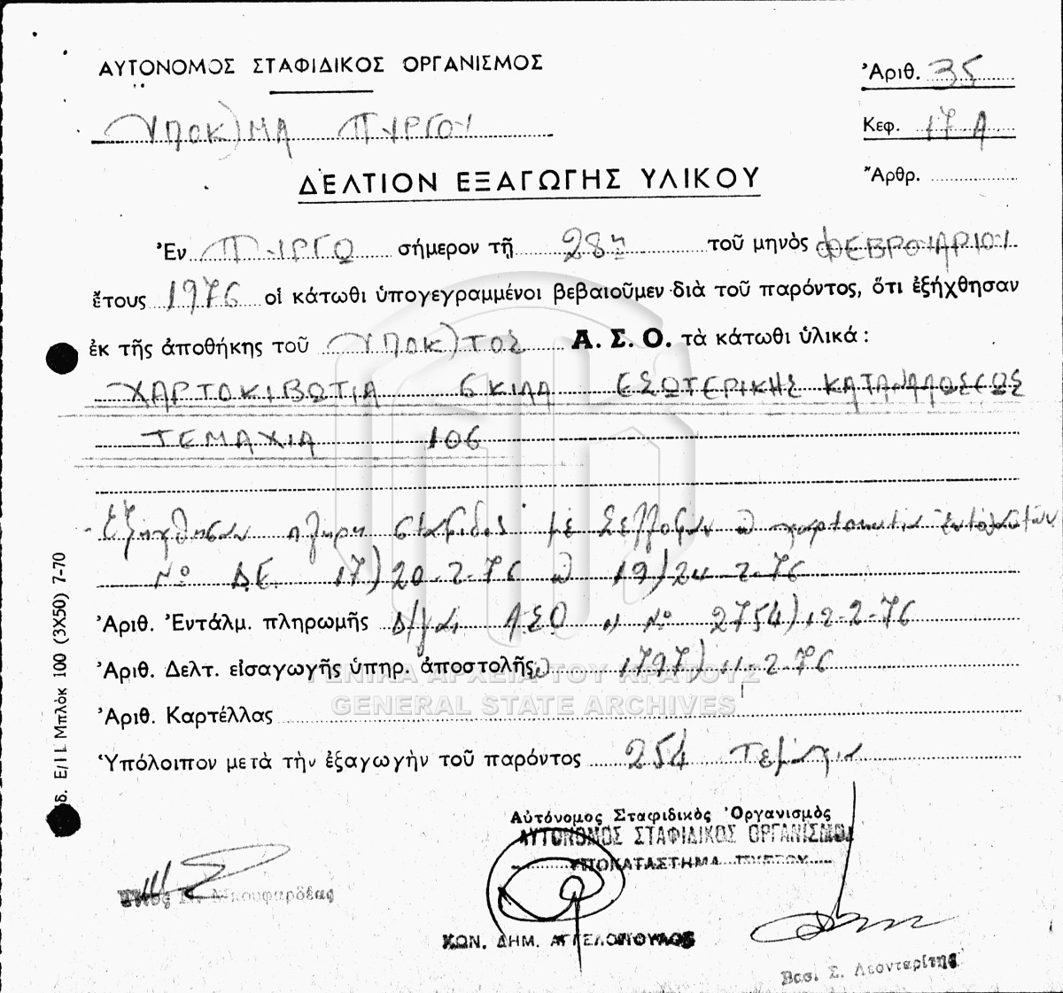 [File] GRGSA-ILE_ADM007.01.F000030 File #030 - ΙΝΣΤΙΤΟΥΤΟ ΣΤΑΦΙΔΑΣ [1971 - 1988] Contents: Αγοραπωλησία σταφίδας. Πίνακες ημερήσιας παραλαβής σταφίδας. Σχετικά με την παραγωγή σταφίδας. Σχετικά με την παραγωγή σ... |
