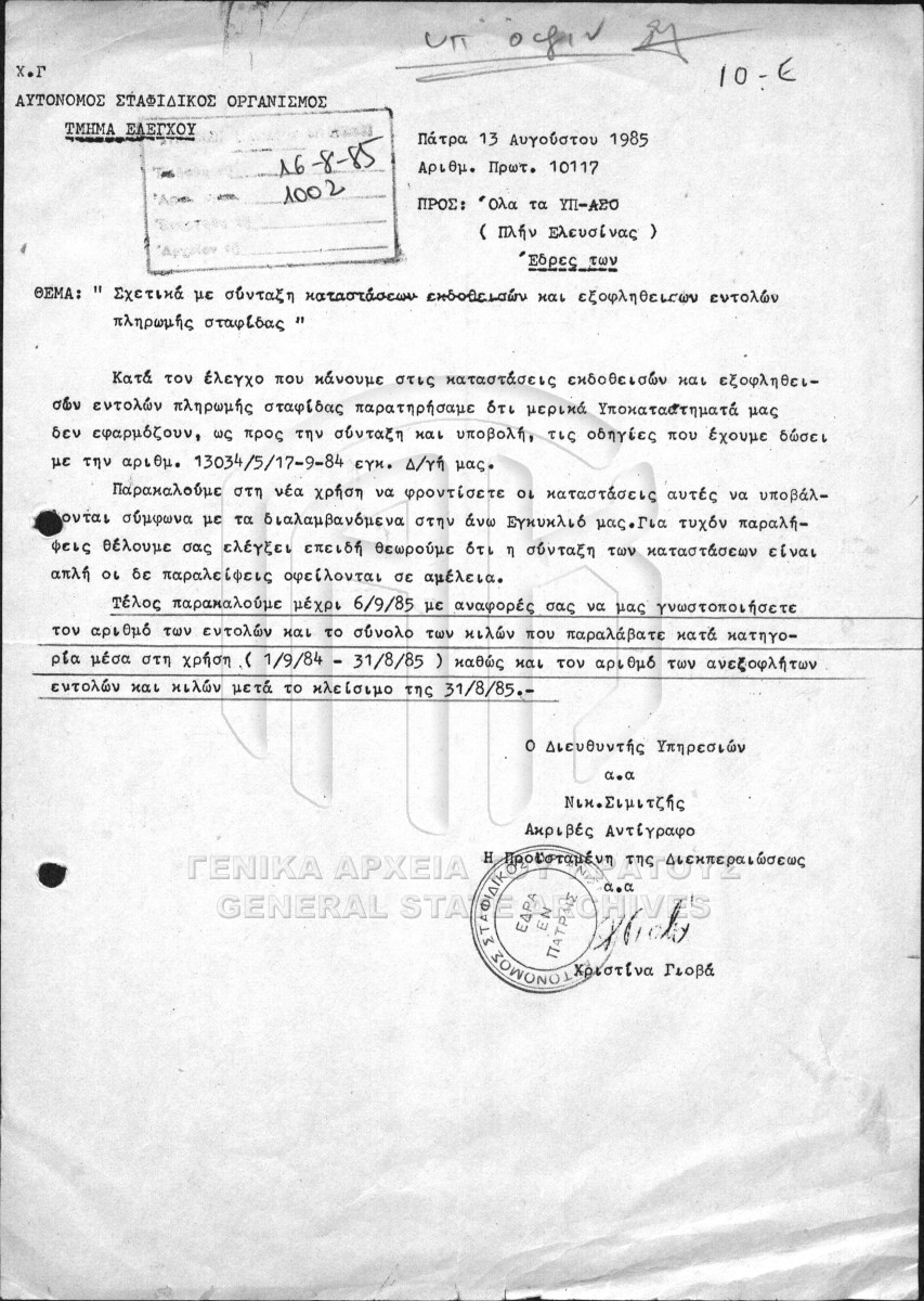 Υποφάκελος #016 - ΙΝΣΤΙΤΟΥΤΟ ΣΤΑΦΙΔΑΣ  [1984 - 1986]