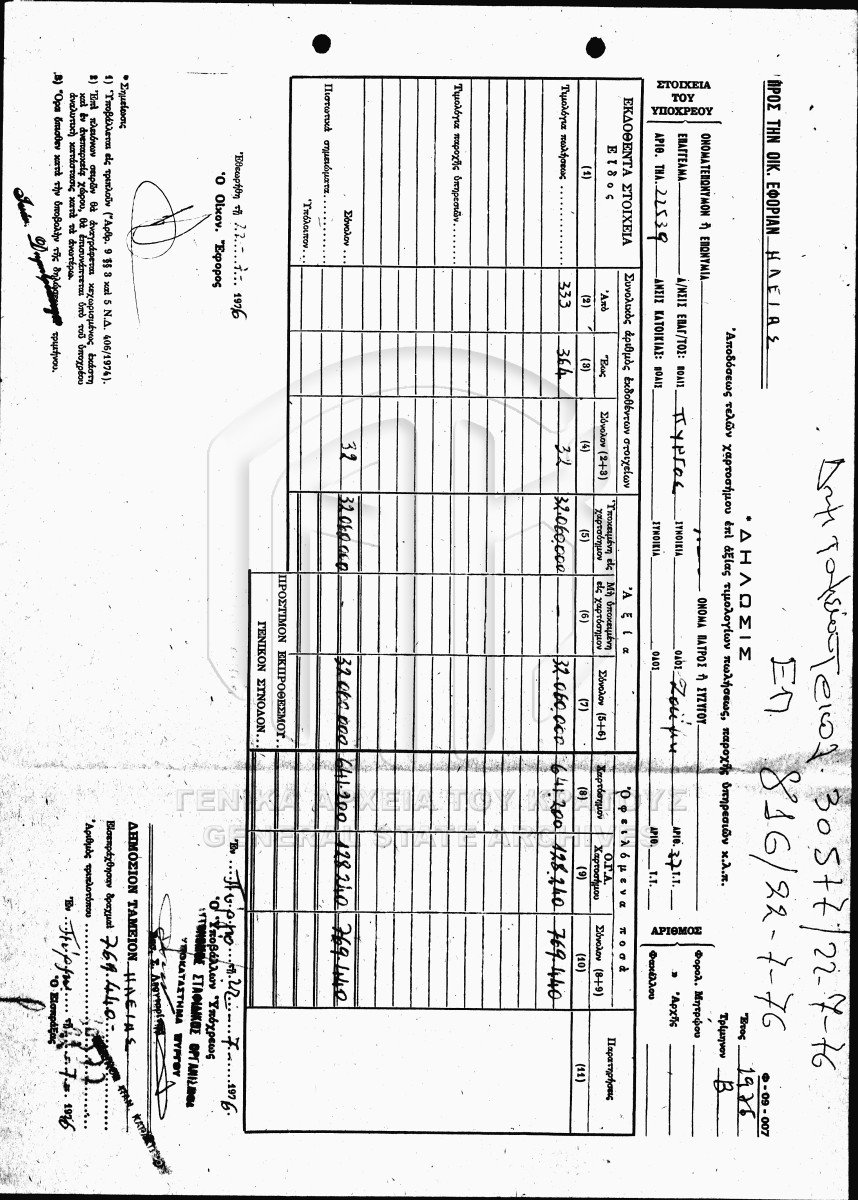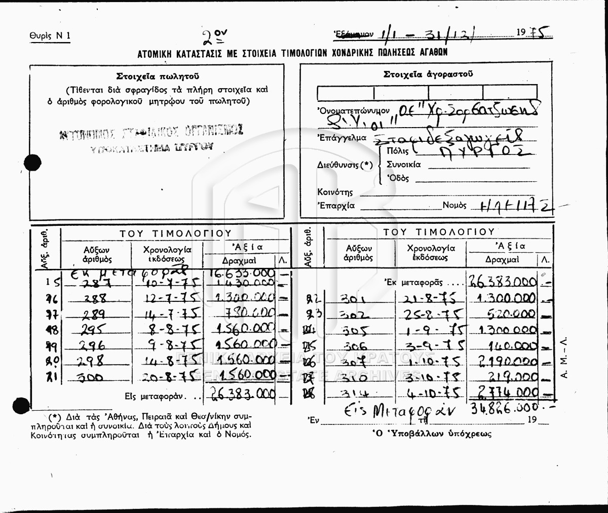 Καταστάσεις τιμολογίων, εισφορών κ.α.