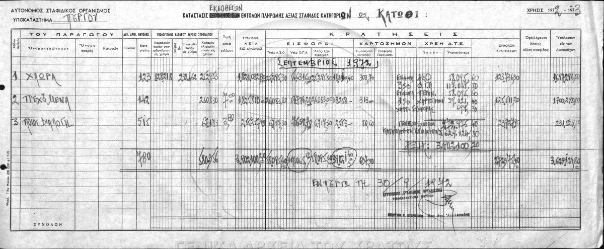 [Subfile] GRGSA-ILE_ADM007.01.F000030.SF0018 Subfile #018 - ΙΝΣΤΙΤΟΥΤΟ ΣΤΑΦΙΔΑΣ [1971 - 1974] Καταστάσεις τιμολογίων, εισφορών κ.α. |