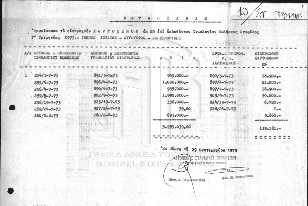 [Sous-fichier] GRGSA-ILE_ADM007.01.F000030.SF0018 Sous-fichier #018 - ΙΝΣΤΙΤΟΥΤΟ ΣΤΑΦΙΔΑΣ [1971 - 1974] Καταστάσεις τιμολογίων, εισφορών κ.α. |