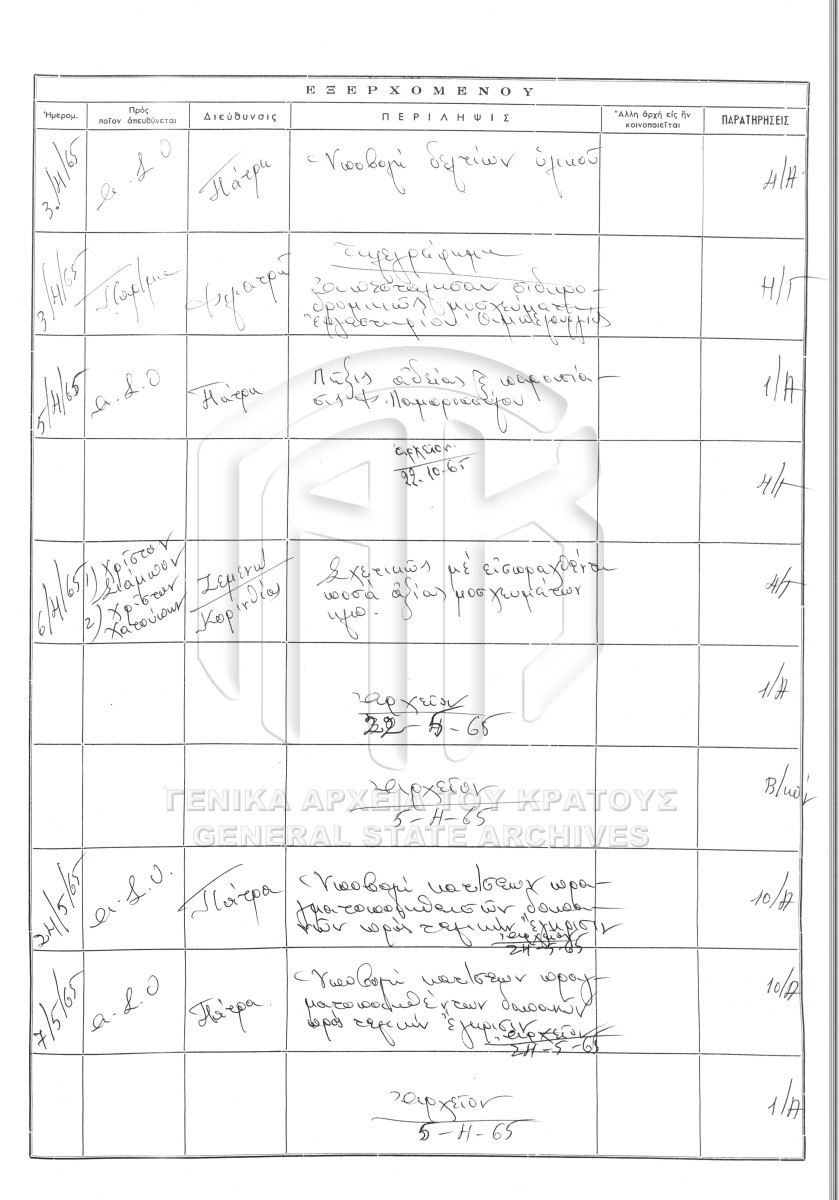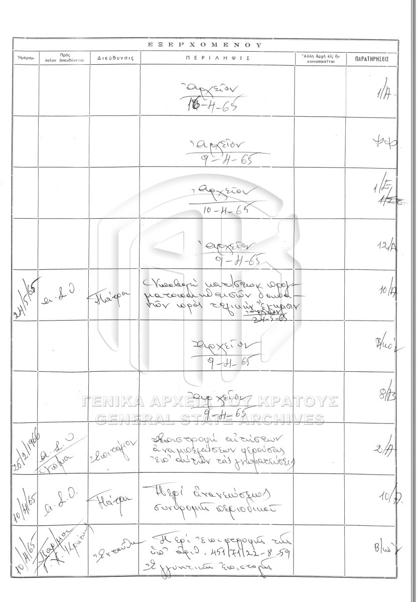 Contents: Πρωτόκολλο εισερχομένων. Πρωτόκολλο εξερχομένων.
