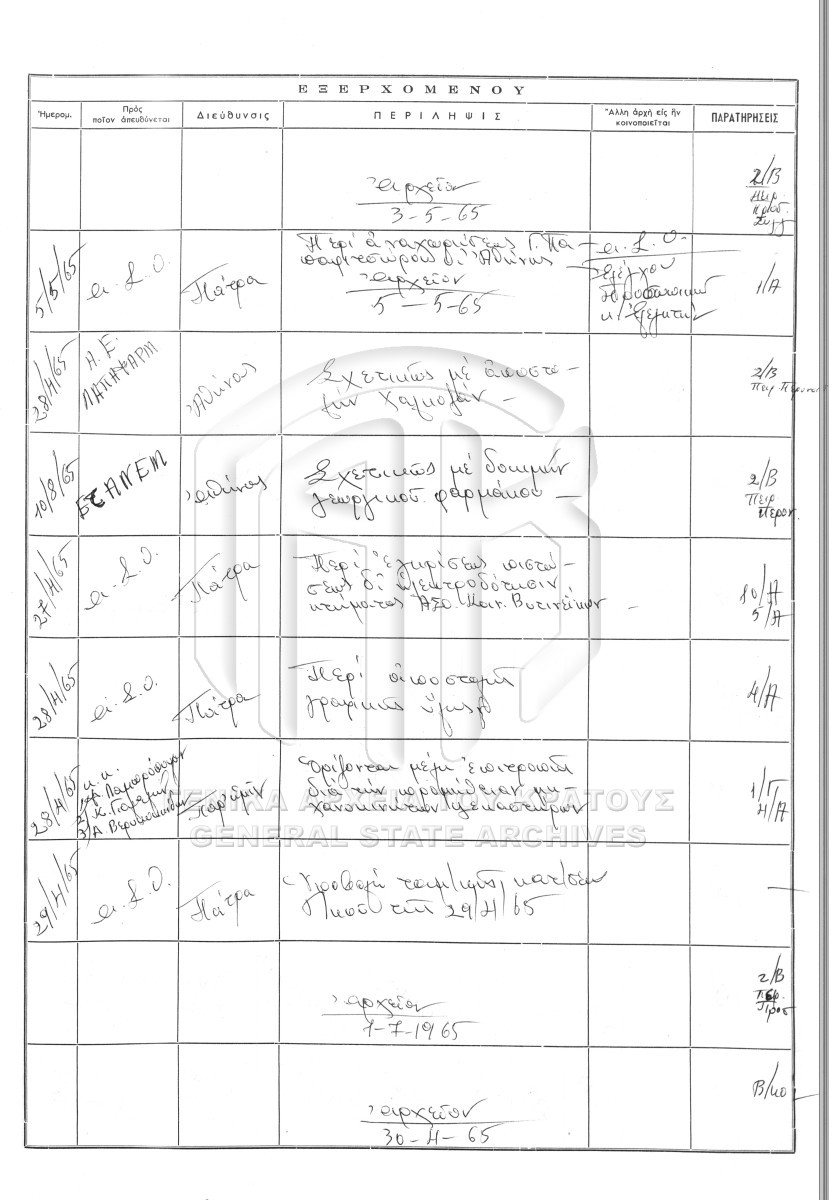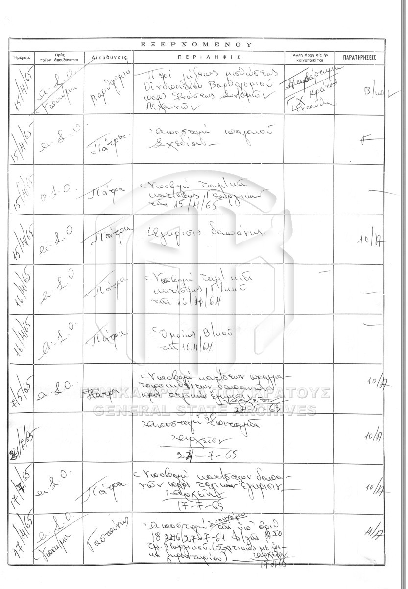 Contents: Πρωτόκολλο εισερχομένων. Πρωτόκολλο εξερχομένων.