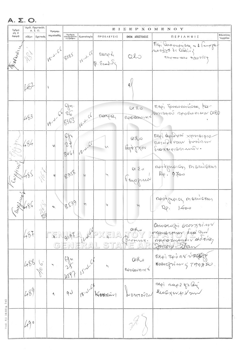 [Subfile] GRGSA-ILE_ADM007.01.F000031.SF0002 Subfile #002 - ΙΝΣΤΙΤΟΥΤΟ ΣΤΑΦΙΔΑΣ [1966 - 1969] Πρωτόκολλο εισερχομένων. |