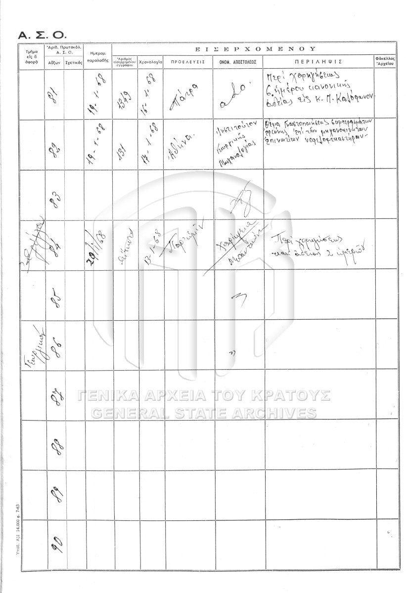Contents: Πρωτόκολλο εισερχομένων. Πρωτόκολλο εξερχομένων.