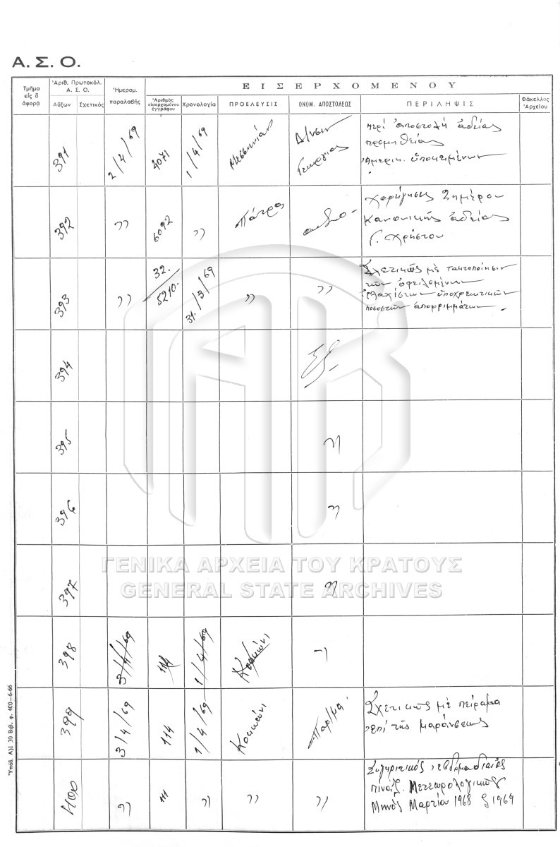 [Sous-fichier] GRGSA-ILE_ADM007.01.F000031.SF0003 Sous-fichier #003 - ΙΝΣΤΙΤΟΥΤΟ ΣΤΑΦΙΔΑΣ [1968 - 1971] Πρωτόκολλο εισερχομένων. |