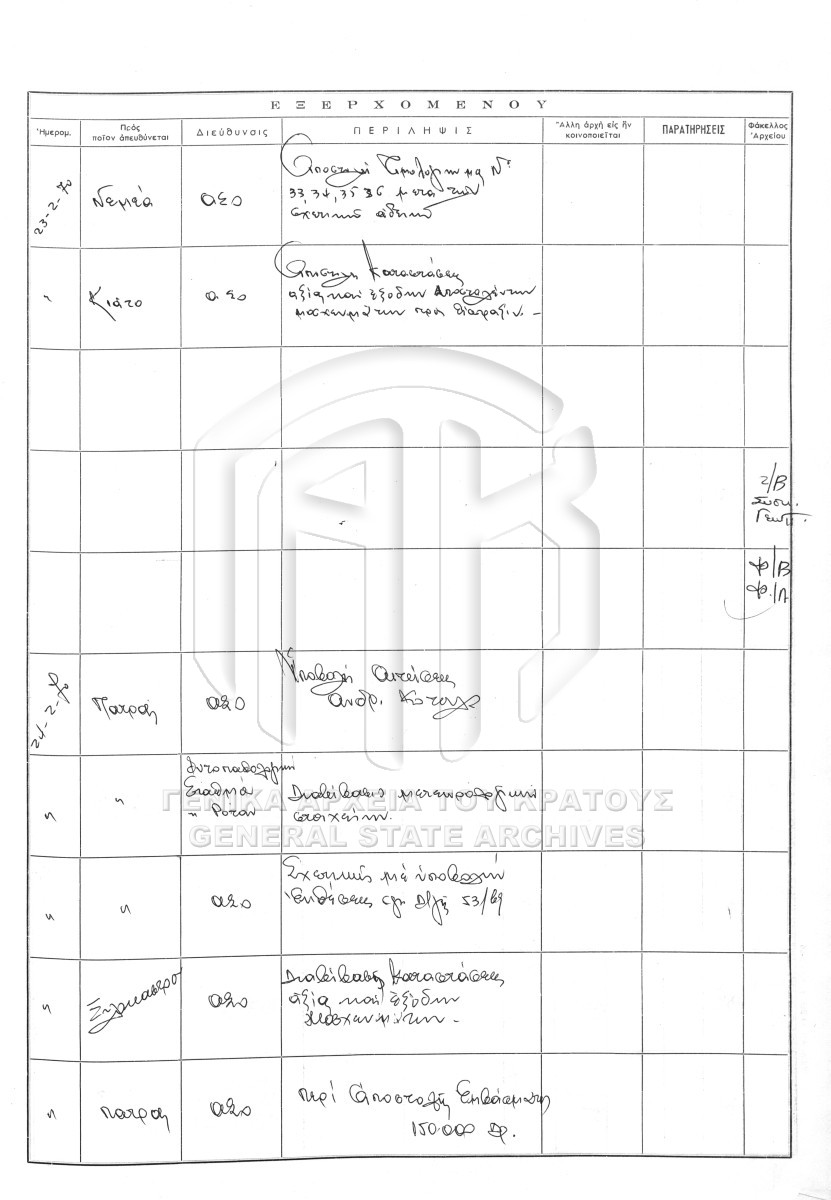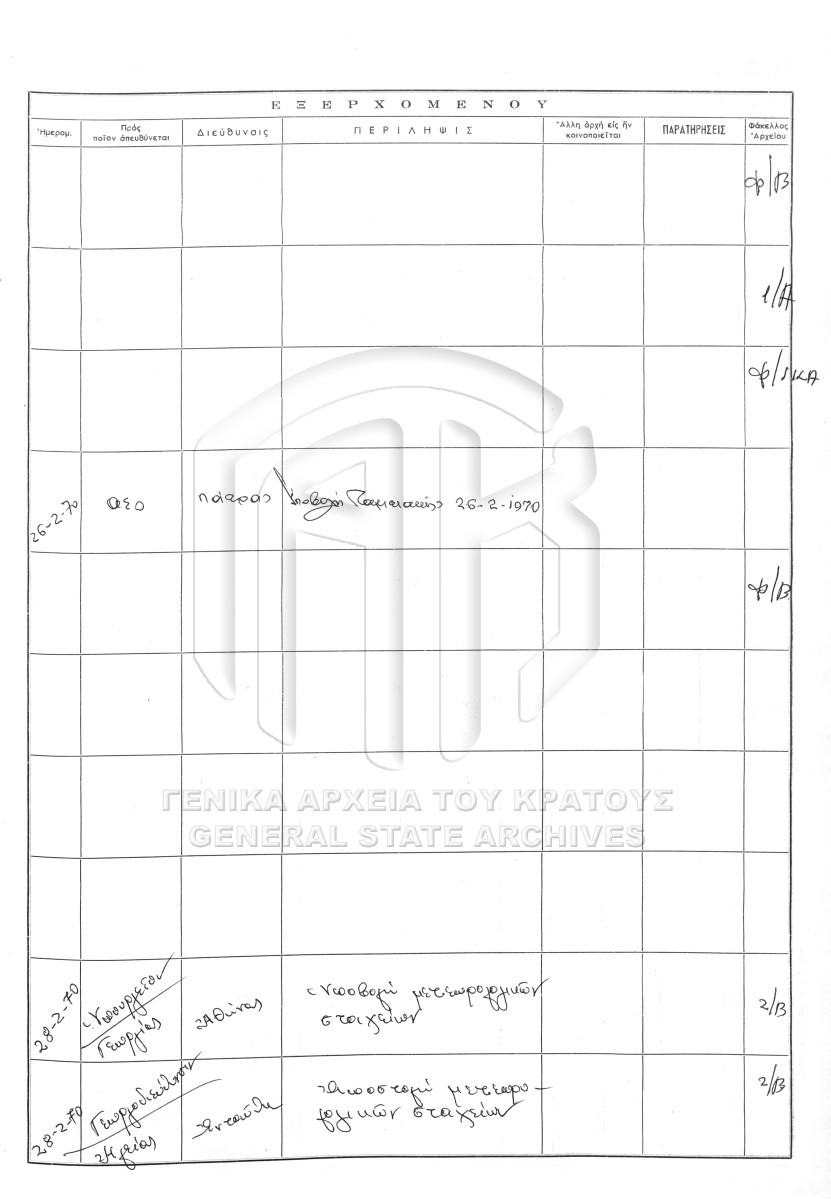Contents: Πρωτόκολλο εισερχομένων. Πρωτόκολλο εξερχομένων.