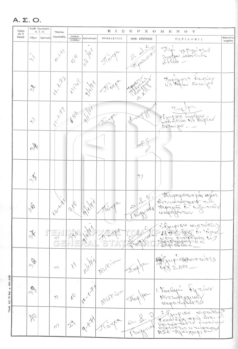 Contents: Πρωτόκολλο εισερχομένων. Πρωτόκολλο εξερχομένων.