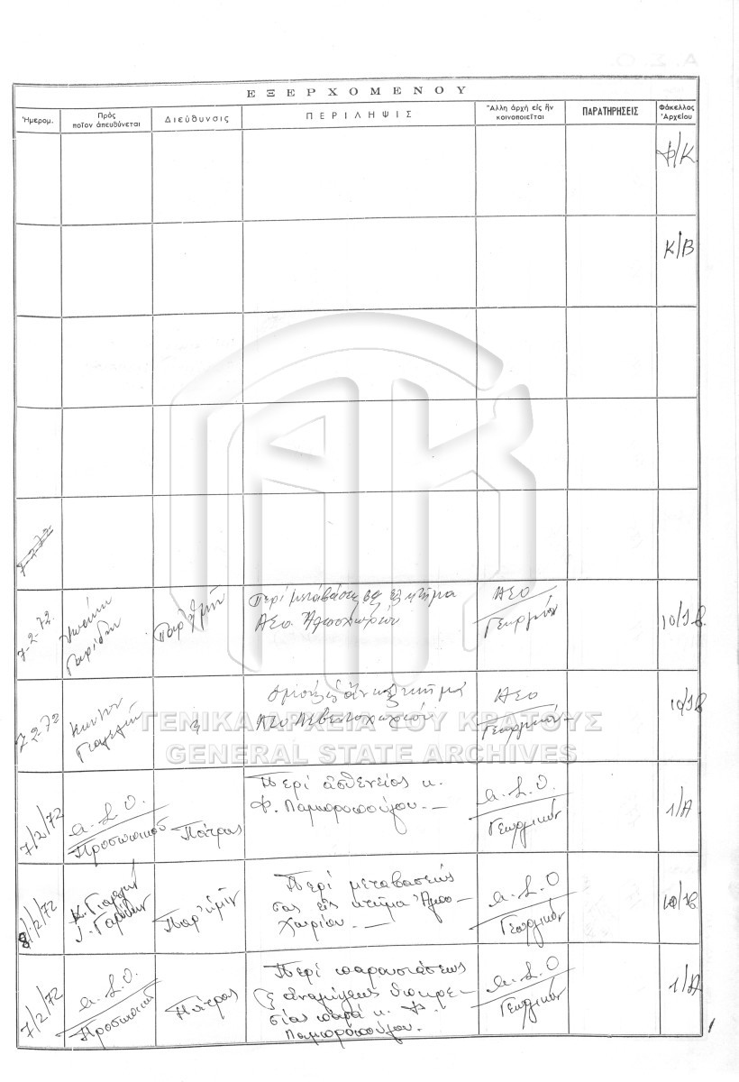 Contenu: Πρωτόκολλο εισερχομένων. Πρωτόκολλο εξερχομένων.