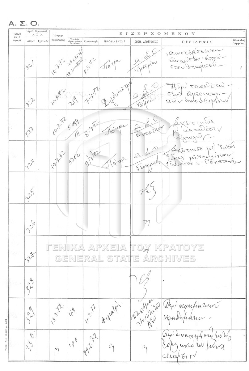[Sous-fichier] GRGSA-ILE_ADM007.01.F000031.SF0004 Sous-fichier #004 - ΙΝΣΤΙΤΟΥΤΟ ΣΤΑΦΙΔΑΣ [1971 - 1974] Πρωτόκολλο εισερχομένων. |