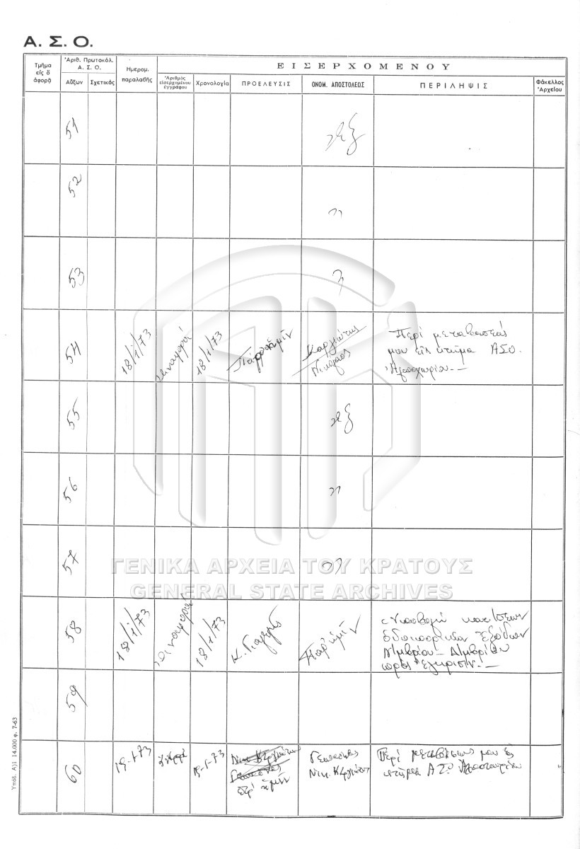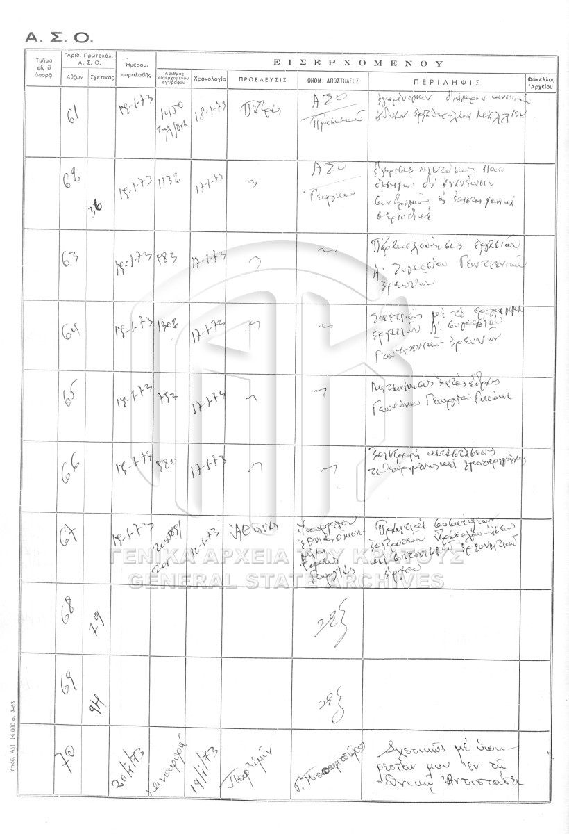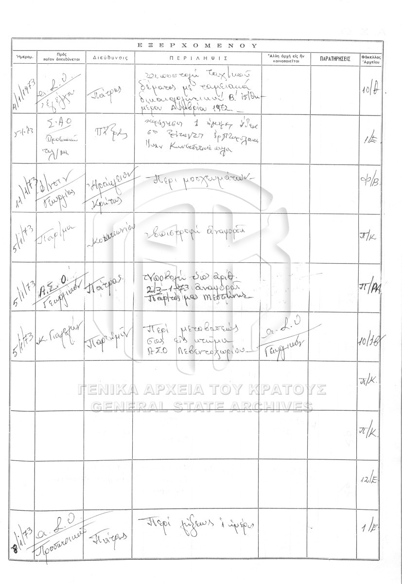 Contents: Πρωτόκολλο εισερχομένων. Πρωτόκολλο εξερχομένων.