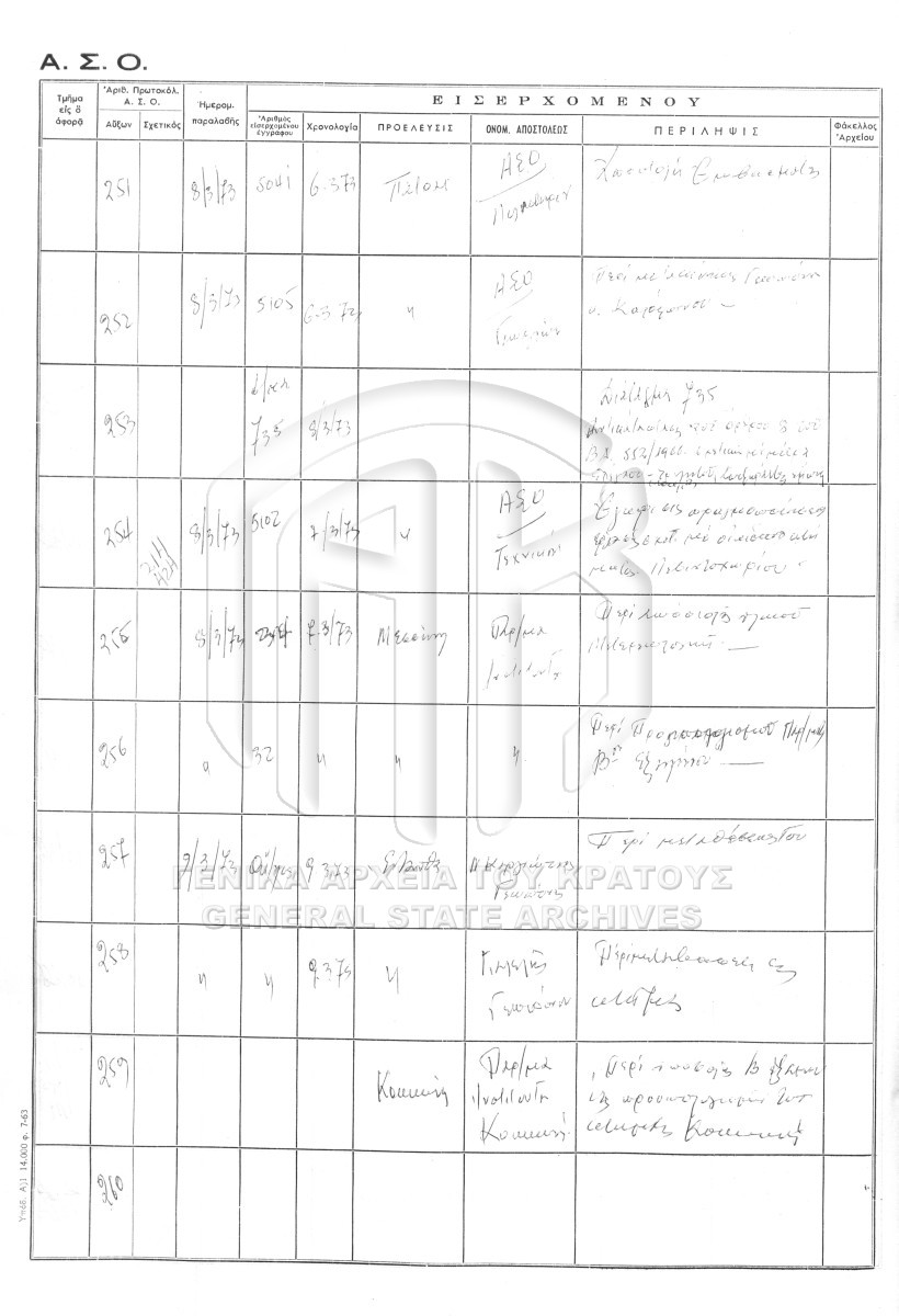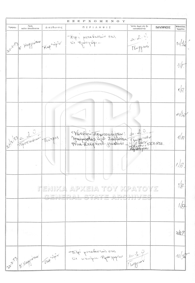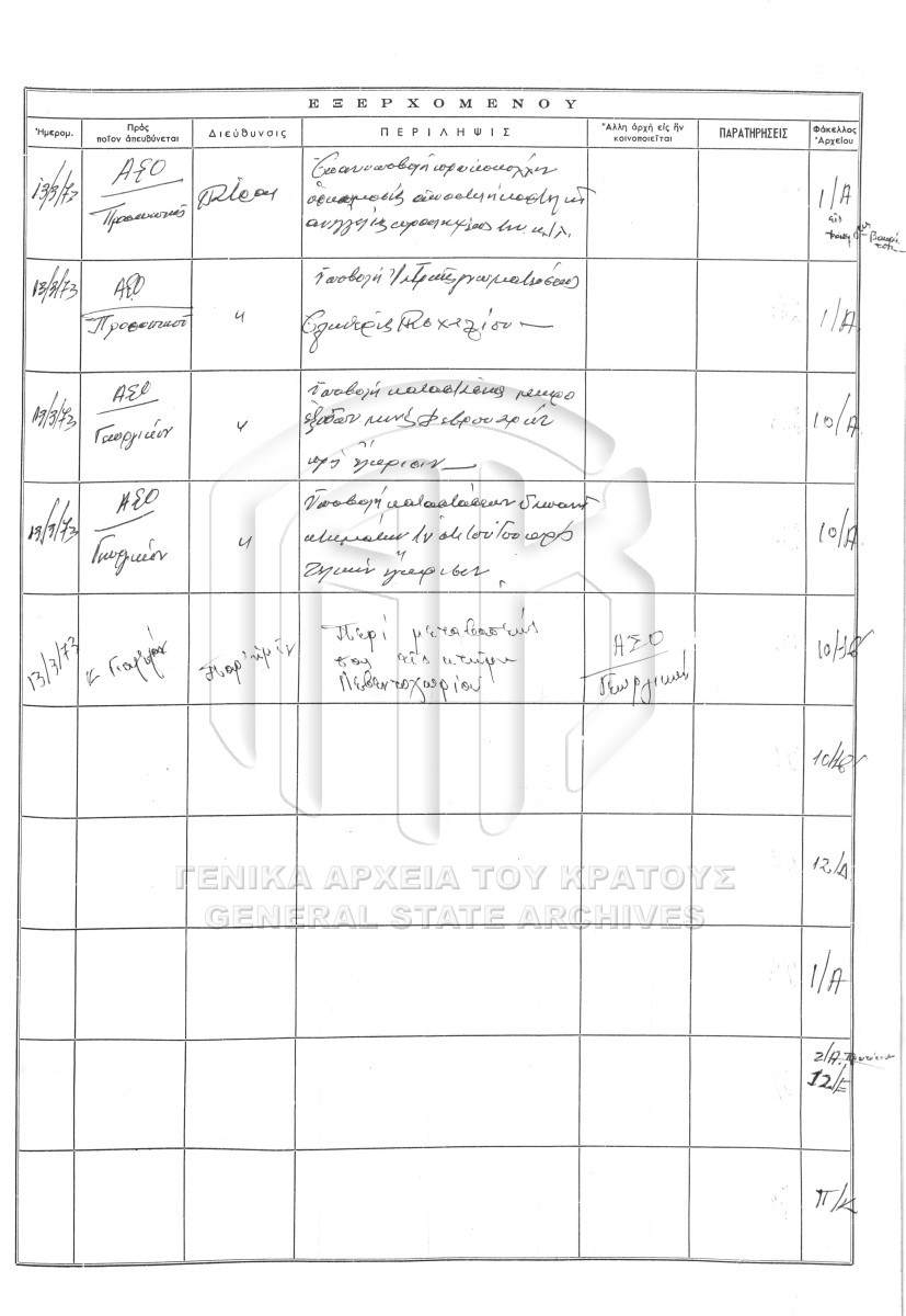Contents: Πρωτόκολλο εισερχομένων. Πρωτόκολλο εξερχομένων.