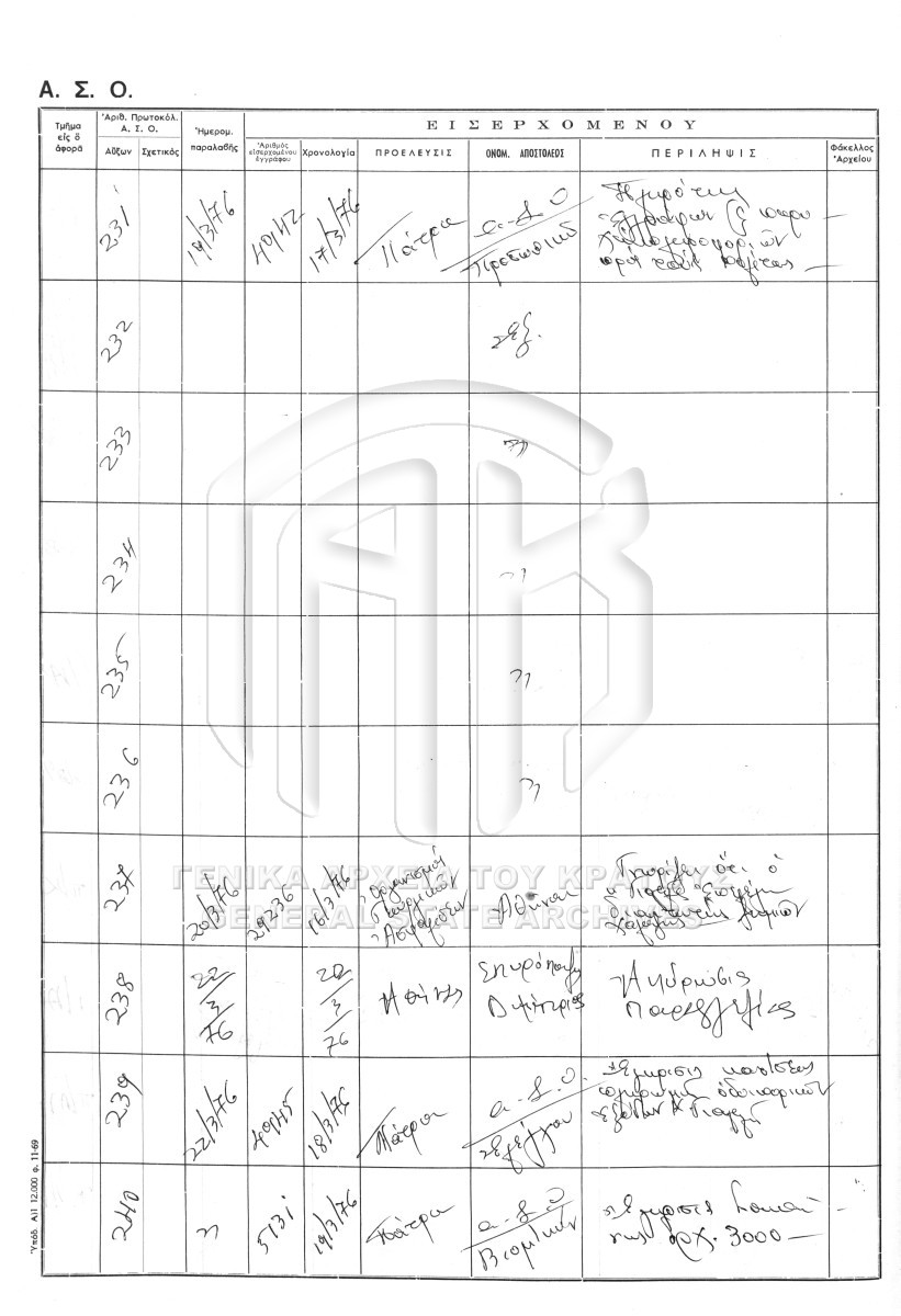 Contents: Πρωτόκολλο εισερχομένων. Πρωτόκολλο εξερχομένων.