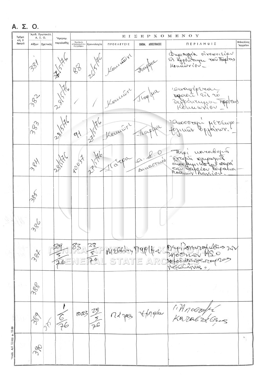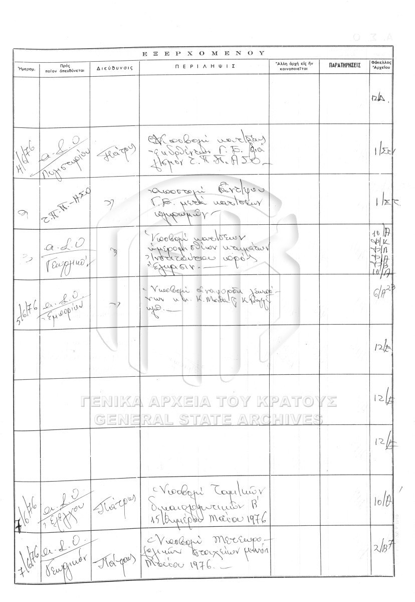 Contents: Πρωτόκολλο εισερχομένων. Πρωτόκολλο εξερχομένων.