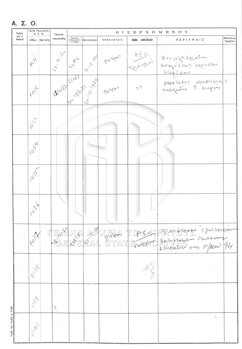 [Subfile] GRGSA-ILE_ADM007.01.F000031.SF0005 Subfile #005 - ΙΝΣΤΙΤΟΥΤΟ ΣΤΑΦΙΔΑΣ [1974 - 1978] Πρωτόκολλο εισερχομένων. |