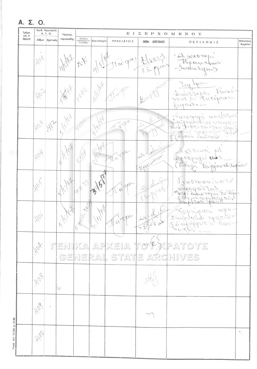 Contents: Πρωτόκολλο εισερχομένων. Πρωτόκολλο εξερχομένων.