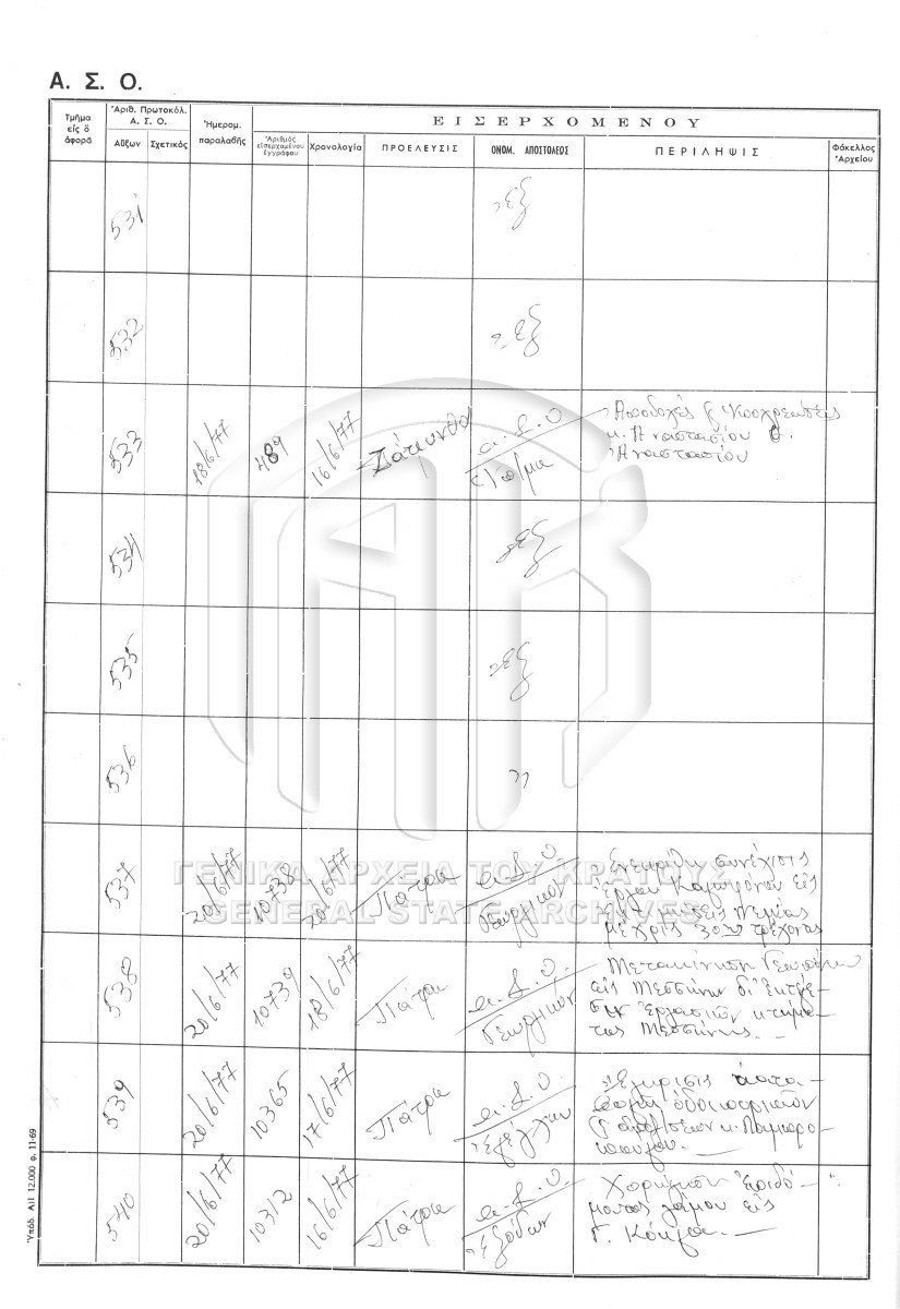 Contents: Πρωτόκολλο εισερχομένων. Πρωτόκολλο εξερχομένων.