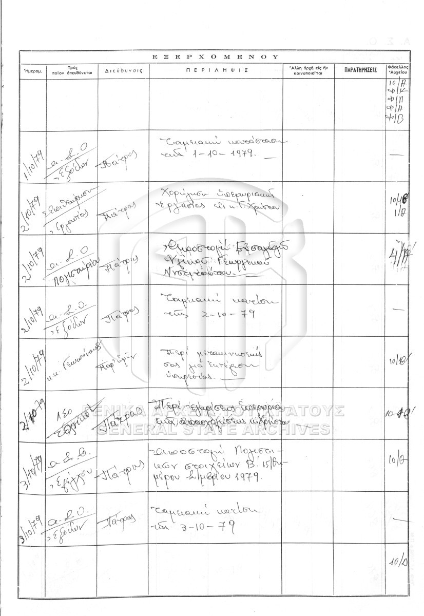 Contents: Πρωτόκολλο εισερχομένων. Πρωτόκολλο εξερχομένων.
