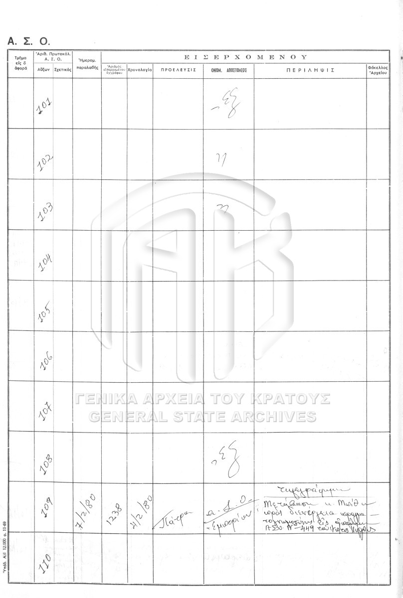 Contents: Πρωτόκολλο εισερχομένων. Πρωτόκολλο εξερχομένων.