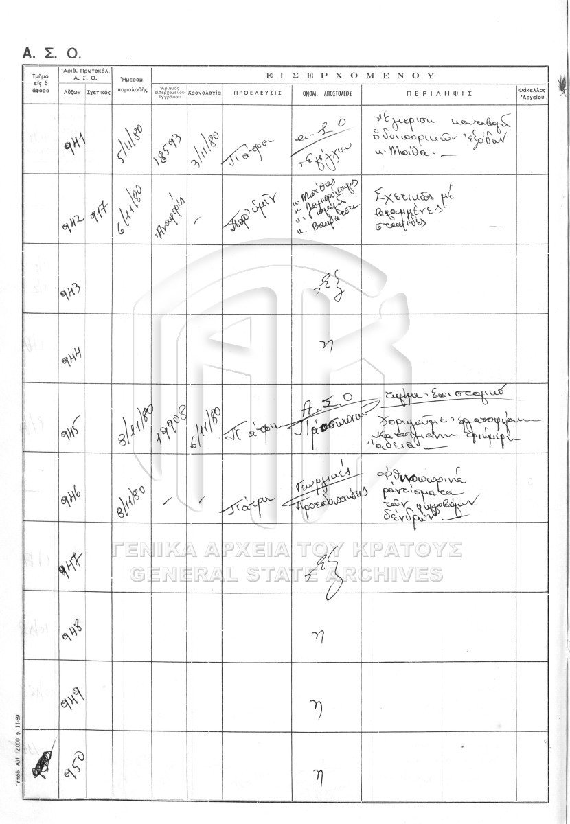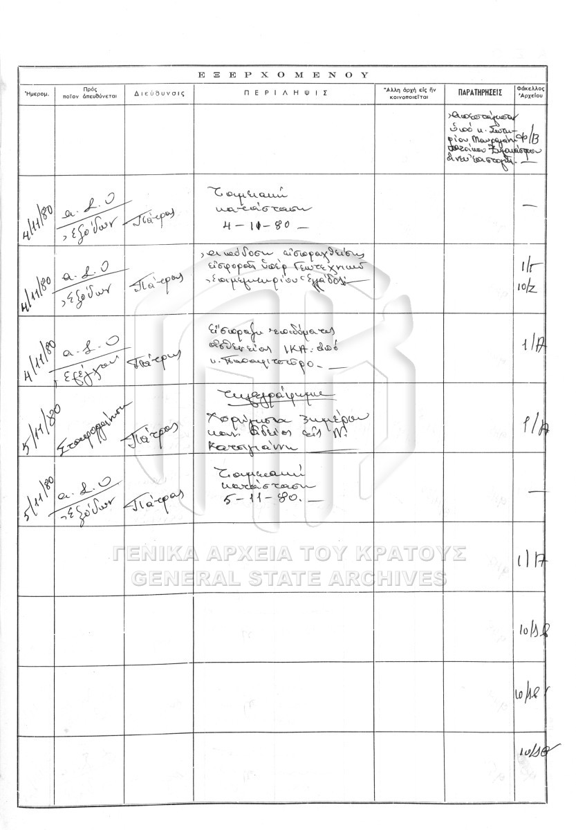 Contents: Πρωτόκολλο εισερχομένων. Πρωτόκολλο εξερχομένων.