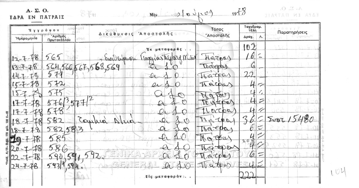 Contents: Πρωτόκολλο εισερχομένων. Πρωτόκολλο εξερχομένων.