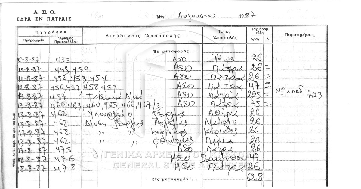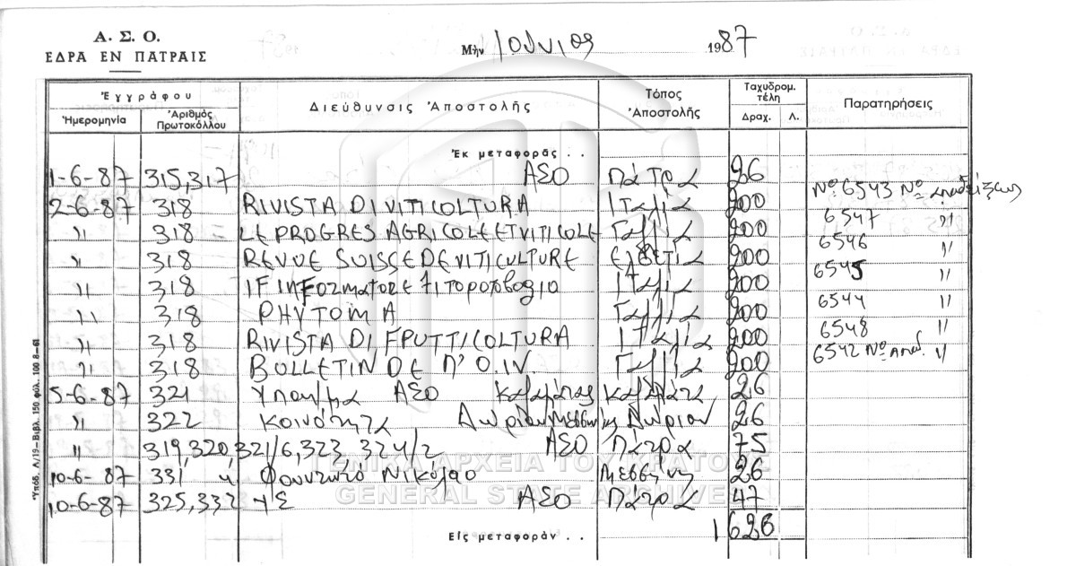 [Sous-fichier] GRGSA-ILE_ADM007.01.F000031.SF0008 Sous-fichier #008 - ΙΝΣΤΙΤΟΥΤΟ ΣΤΑΦΙΔΑΣ [1983 - 1991] Πρωτόκολλο εξερχομένων. |