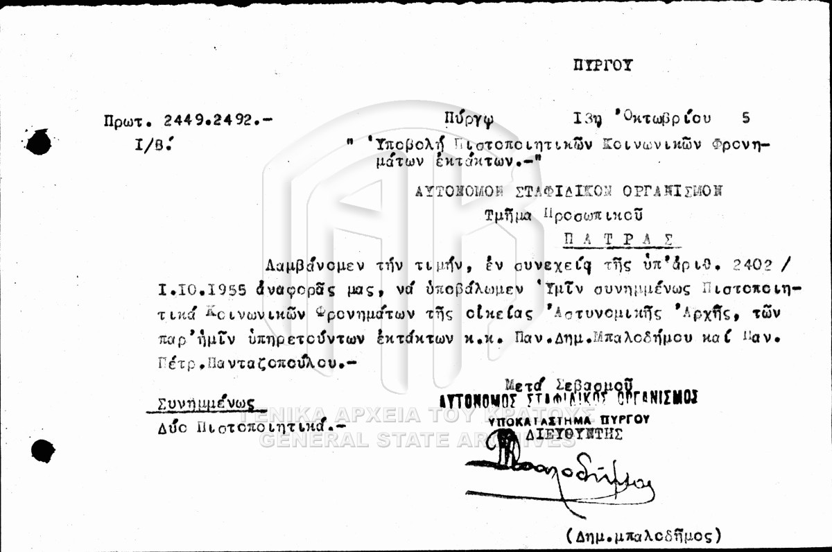 Φάκελος #033 - ΙΝΣΤΙΤΟΥΤΟ ΣΤΑΦΙΔΑΣ / ΑΤΟΜΙΚΟΙ ΦΑΚΕΛΟΙ ΥΠΑΛΛΗΛΩΝ  [1951 - 1967]