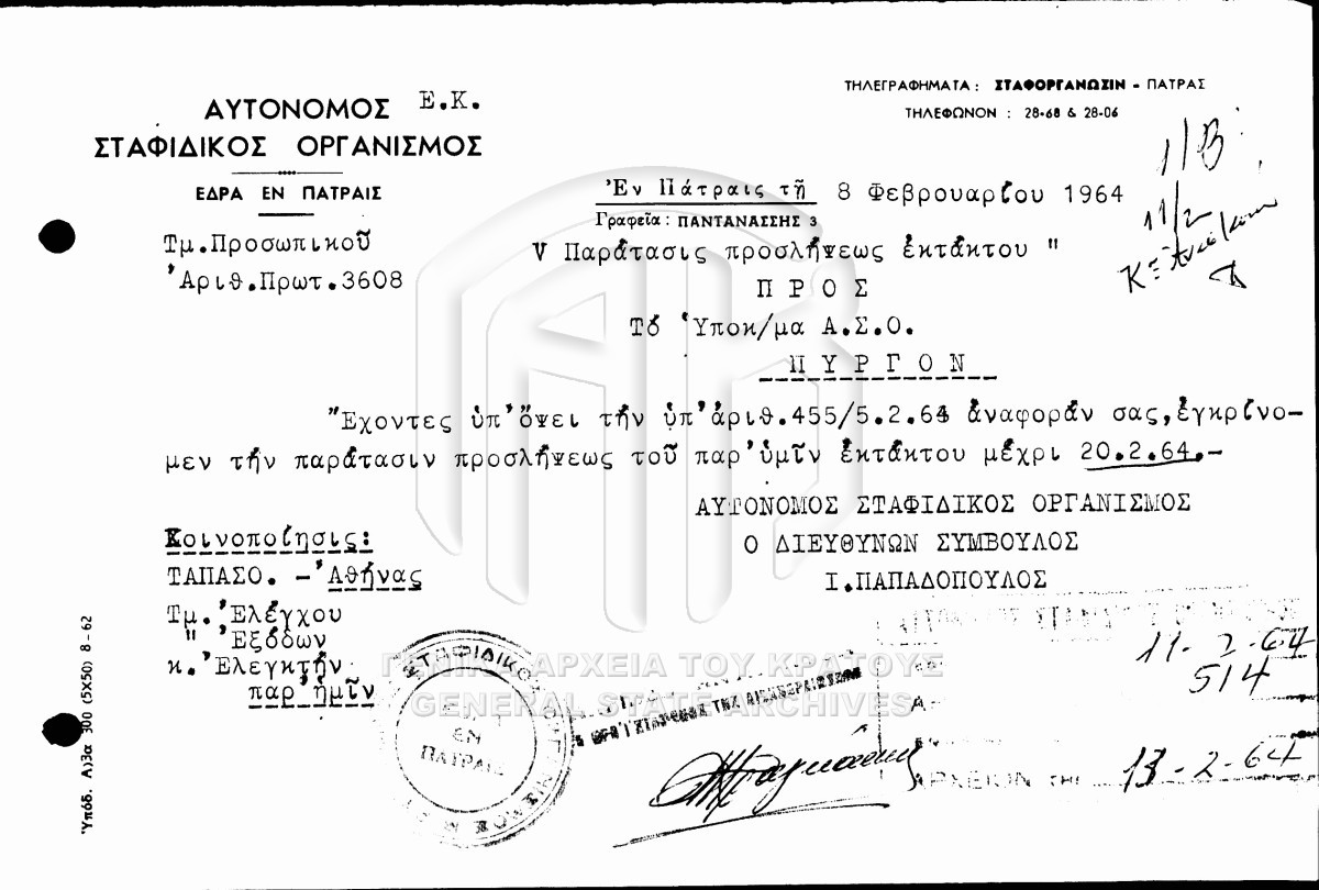 Φάκελος #033 - ΙΝΣΤΙΤΟΥΤΟ ΣΤΑΦΙΔΑΣ / ΑΤΟΜΙΚΟΙ ΦΑΚΕΛΟΙ ΥΠΑΛΛΗΛΩΝ  [1951 - 1967]