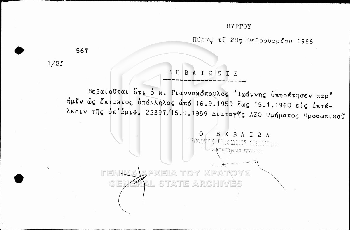Subfile #003 - ΙΝΣΤΙΤΟΥΤΟ ΣΤΑΦΙΔΑΣ / ΑΤΟΜΙΚΟΙ ΦΑΚΕΛΟΙ ΥΠΑΛΛΗΛΩΝ  [1960 - 1967]