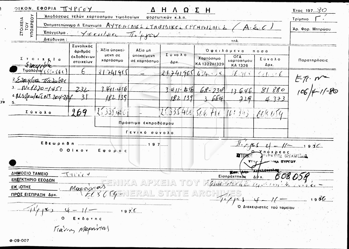 Contents: Χρεωπίστωση υλικού. Υποβολή καταστάσεων. Πρακτικά και αιτήσεις. Υπηρεσιακή αλληλογραφία. Καταστάσεις αγοράς αγροτικών πρ...