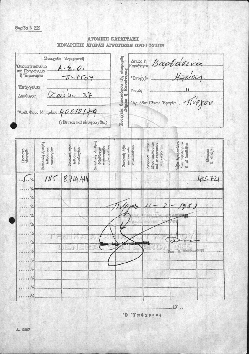 Contents: Χρεωπίστωση υλικού. Υποβολή καταστάσεων. Πρακτικά και αιτήσεις. Υπηρεσιακή αλληλογραφία. Καταστάσεις αγοράς αγροτικών πρ...